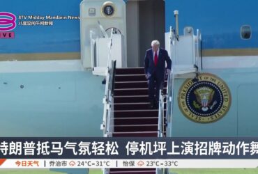 特朗普今早抵达我国 停机坪上演招牌动作舞
