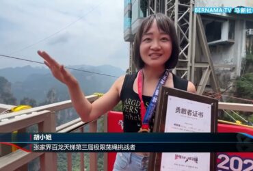 中国张家界极限荡绳挑战赛 70人千米悬崖上演空中芭蕾