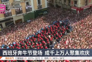 西班牙奔牛节登场 成千上万人聚集欢庆