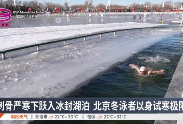 刺骨严寒下跃入冰封湖泊 北京冬泳者以身试寒极限