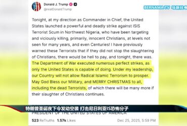 特朗普圣诞夜下令发动空袭 打击尼日利亚IS恐怖分子