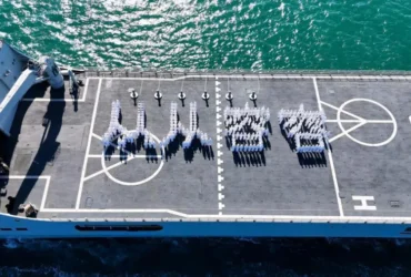 中国海军学员军舰摆出“从从容容”“游刃有馀”