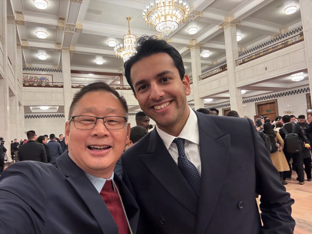 上图:马中透视创办人拿督李中平(左)3月4日在人民大会堂与方浩明自拍