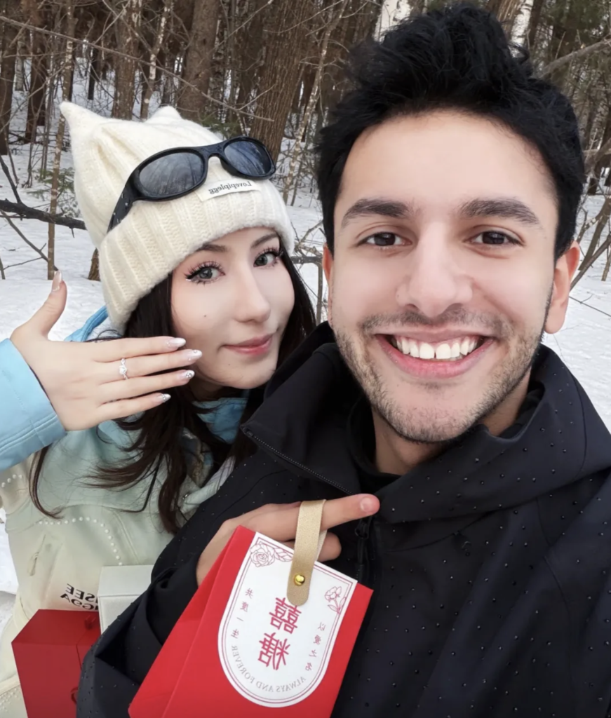 3月10日晚,伊拉克籍记者方浩明女友在社交平台晒出照片官宣订婚。方浩明在雪地单膝跪地求婚,女友落泪答应。 此前,3月7日,文化和旅游部部长孙业礼在十四届全国人大四次会议民生主题记者会上谈到,“成为中国人”已成为网络热词。同日,媒体人苑庆攀发布视频,方浩明手上戴了订婚戒指,向大家公布了方浩明订婚的喜讯。