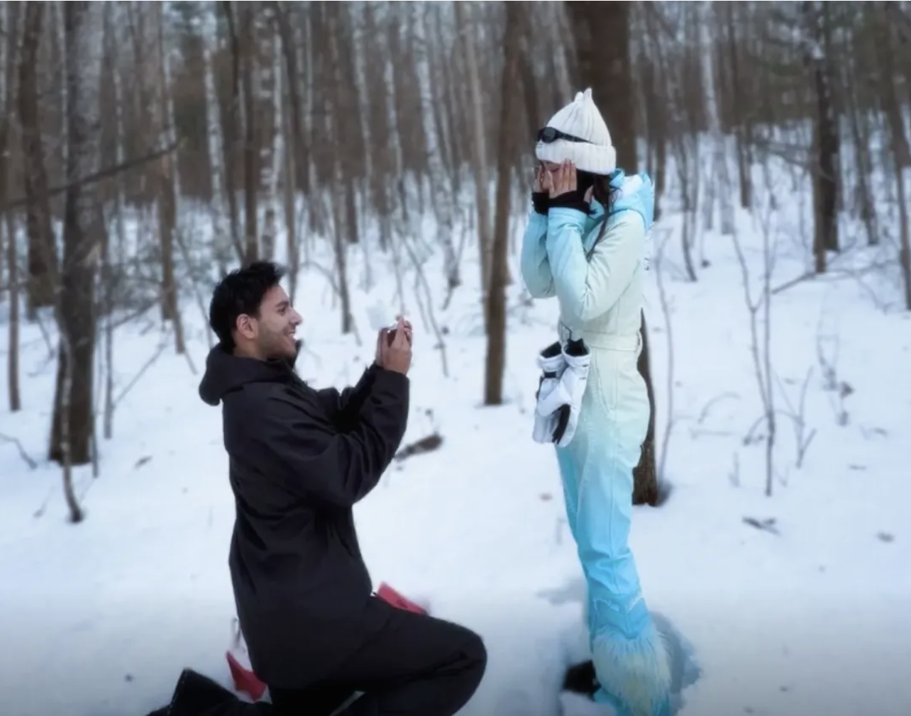 3月10日晚,伊拉克籍记者方浩明女友在社交平台晒出照片官宣订婚。方浩明在雪地单膝跪地求婚,女友落泪答应。