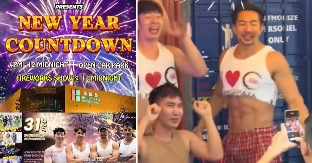 据他所分享的活动海报显示,该集团旗下的富丽华购物广场将在12月31日的露天泊车场举办泡沫派对,届时将邀请泰国猛男表演者表演,更有DJ打碟、现场乐队、舞蹈等演出。