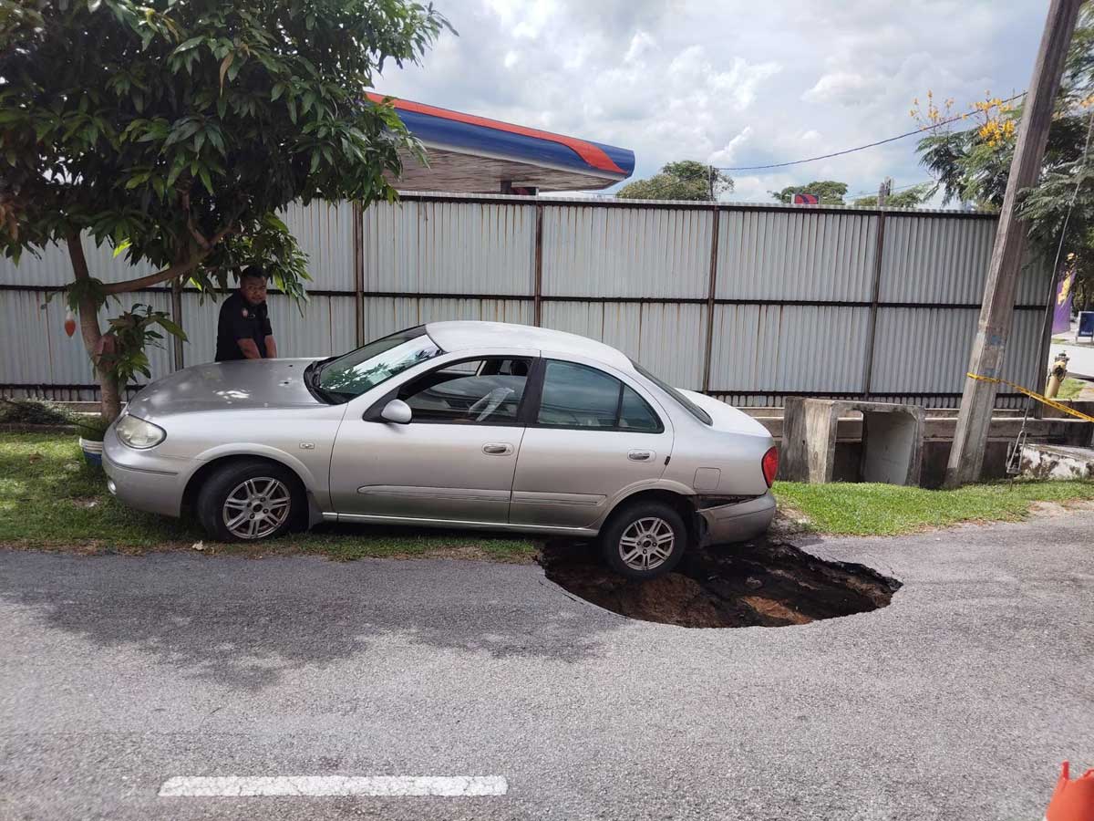 安邦再也市议员李文彬昨午在面子书发帖指,他接获当地居民投诉,指路面出现巨大坑洞,已有轿车不慎掉入,导致车身受损。