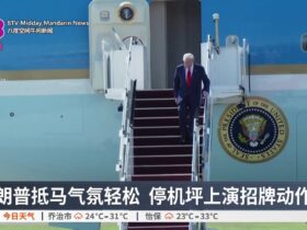 特朗普被大马热情迎宾打动·挥马美国旗随舞者起舞互动