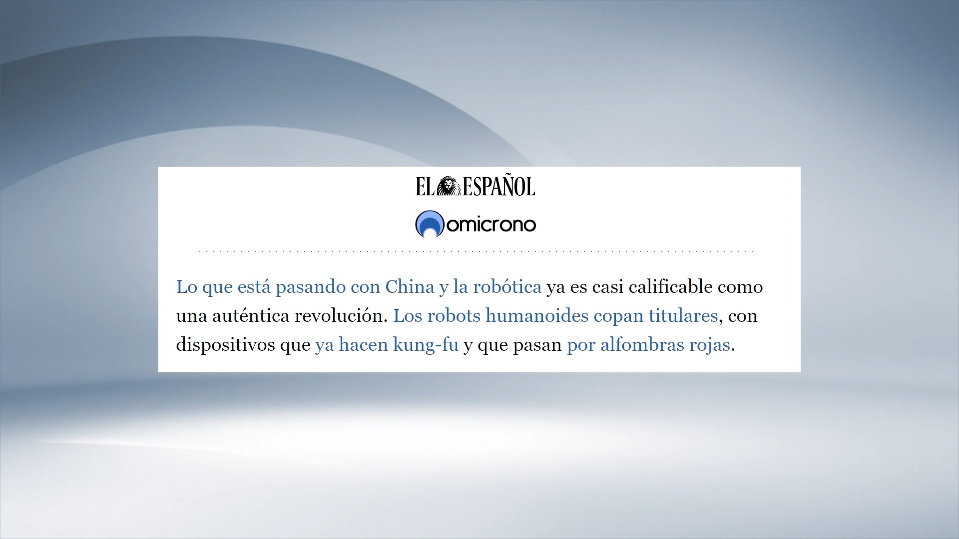 《西班牙人报》刊发题为《十几台中国人形机器人精彩的表演展现了技术的进化》的文章。报道指出,中国机器人领域正在发生的一切事情,几乎可以称之为一场真正的革命。