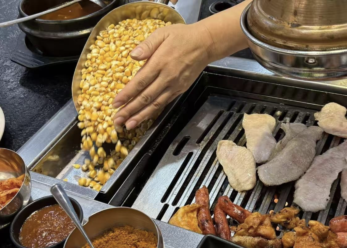 店铺自2019年开业起,便选择玉米作为烤肉燃料。史先生告诉极目新闻记者,他的创业灵感来源于一次旅行中吃的韩国玉米烤肉,觉得这种烤肉没有烟味,于是便从韩国引进烤炉开启创业。普通烤炉单价100多元,而他引进的烤炉单价3600元,店内共配备10个这样的烤炉。