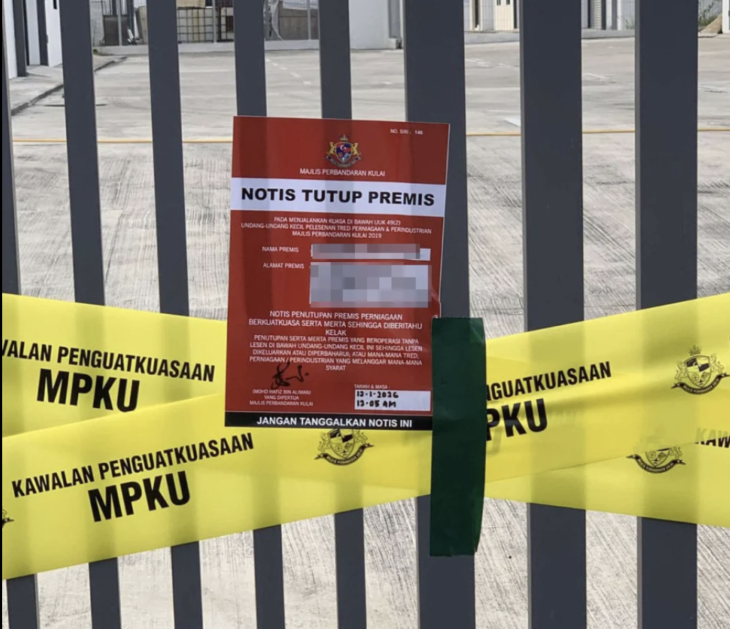 古来市议会于12日凌晨12时05分,援引2019年古来市议会执照、商业及工业法令第49(2)条文,勒令相关工厂立即关闭,直到被通知为止。