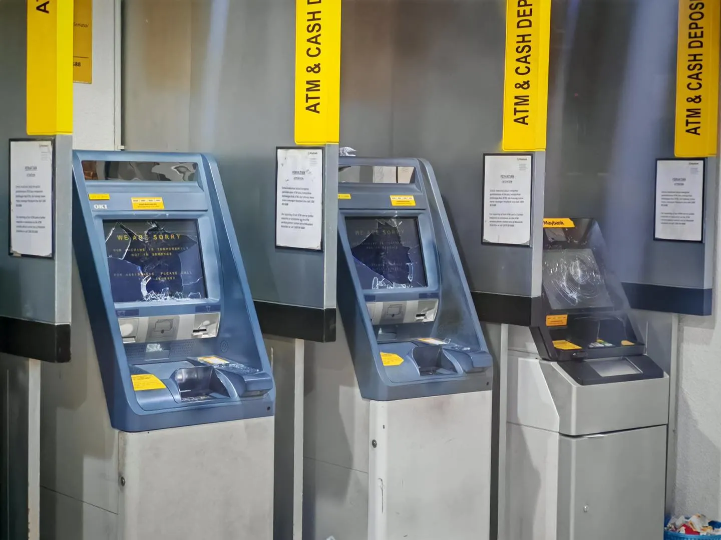(吉隆坡27日讯)一名老油漆工昨日在吉隆坡地庭被控上周在增江三家银行,砸毁13台自动提款机(ATM)屏幕,惟他否认这4项指控。
