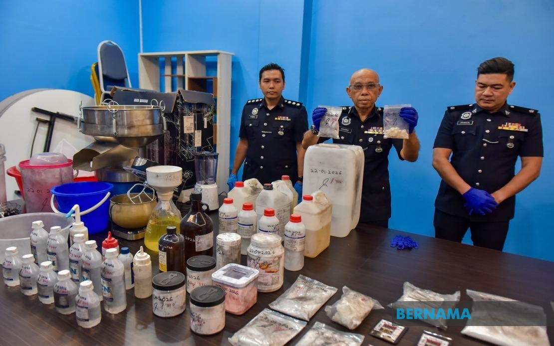 警方上周四在帝沙城市园(Desa Park City)一间公寓单位捣破炼毒厂,并成功逮捕一对中国籍夫妇协助调查。 冼都警区主任阿末苏卡诺助理总监今日召开记者会时指出,警方于当天晚上9时突袭该公寓单位,在客厅桌子上发现一个装有34.9克“克他命”毒品的透明袋,随即逮捕46岁和39岁的中国籍夫妇。
