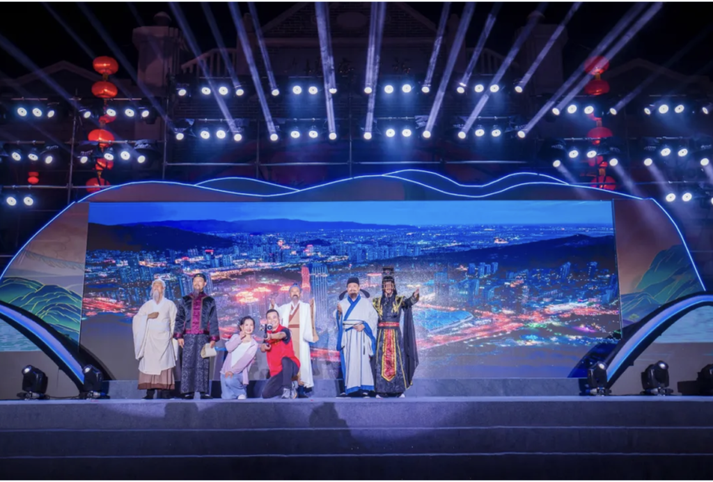 情景表演《跨越山海的对话》将现场氛围推向高潮。舞台上,两位年轻人在花果山下与《西游记》作者吴承恩巧遇,展开一段跨时空的对话,并巧妙引出孔子、秦始皇、苏轼、沈云沛作为连云港的旅游推荐官,最后众人共同发出热情邀请“我们在连云港等你”,让观众感受到了连云港深厚的文化底蕴和蓬勃的发展活力。
