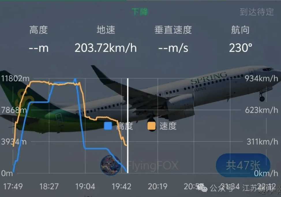 记者查询相关飞行APP,雷达数据显示,该航班18时53分许原本位于超1.1万米的高空,在十分钟内突然急速下降至3200余米的高度。随后在近19时50分落地。