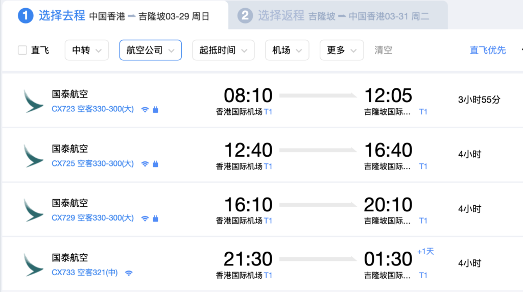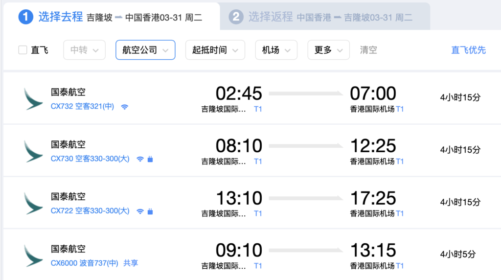 据信源,国泰航空计划自2026年3月29日起,加密其中国香港=吉隆坡航线,该航线将从每天3班增加到每天4班,新增航班将使用空客A321 neo机型客机执飞,而原有的3班均使用空客A330-300机型客机。