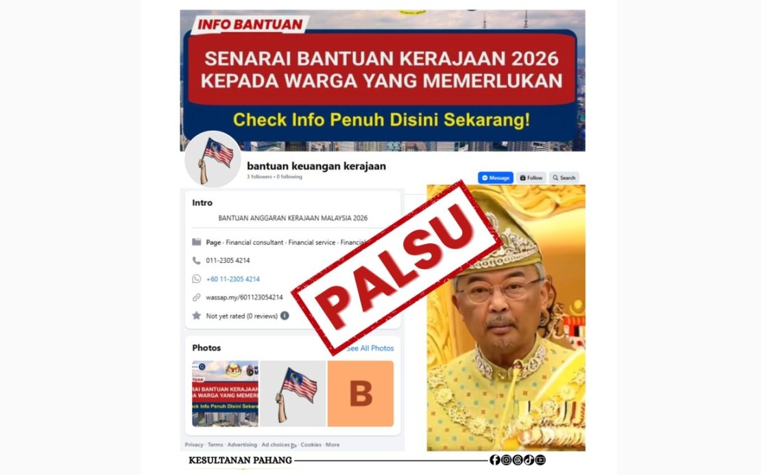 (关丹24日讯)人工智能(AI)技术再被滥用,彭亨苏丹阿都拉的形象遭制作成虚假视频,透过社交媒体假账号宣称会发放政府援助金,民众受促慎防假消息。